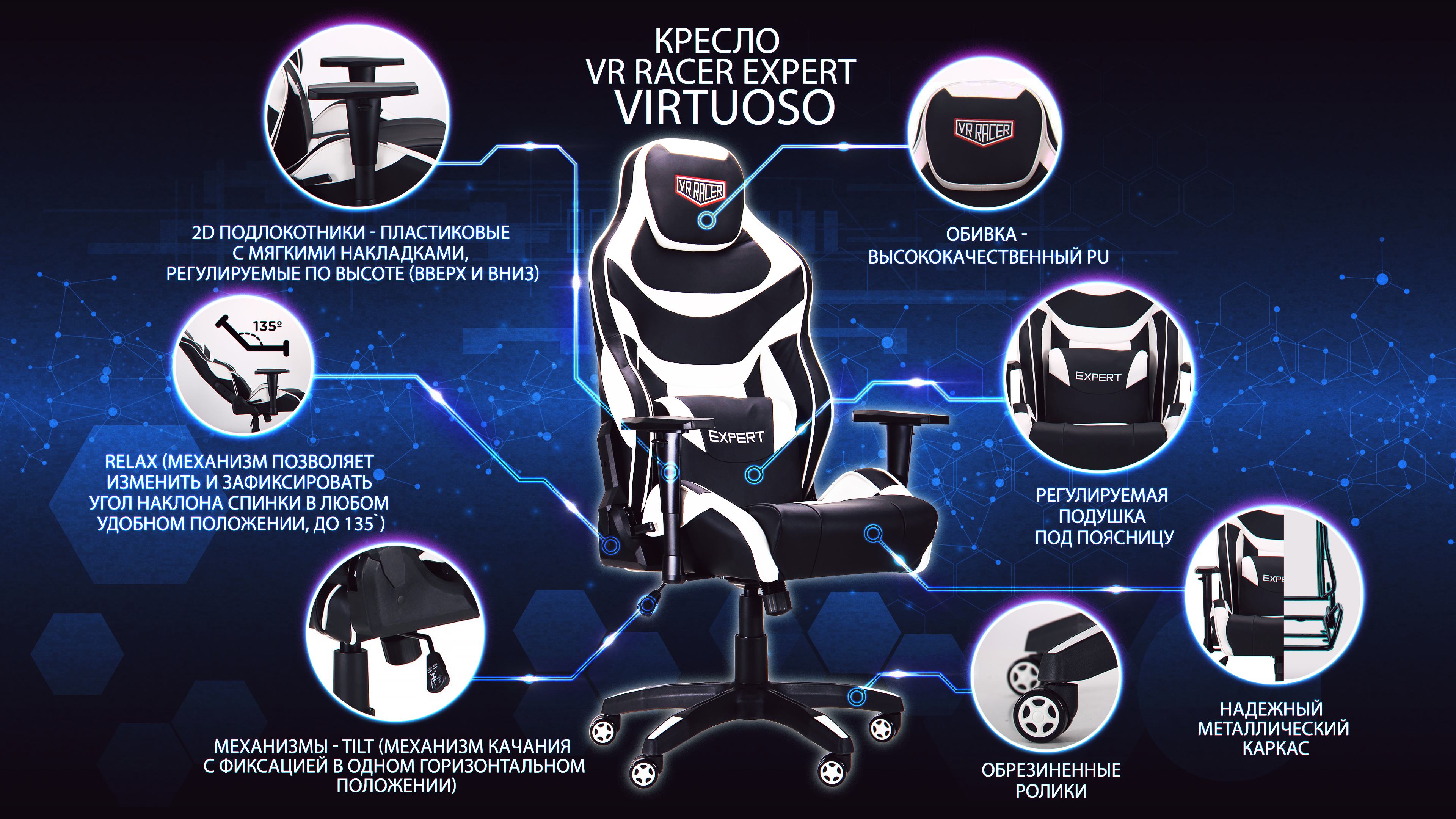 Кресло VR Racer Expert Virtuoso - яркий и функциональный представитель в сегменте игровых кресел