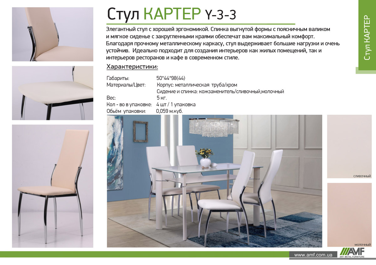 Стул Картер идеально подходит для создания интерьеров как жилых помещений, так и интерьеров ресторанов и кафе в современном стиле.