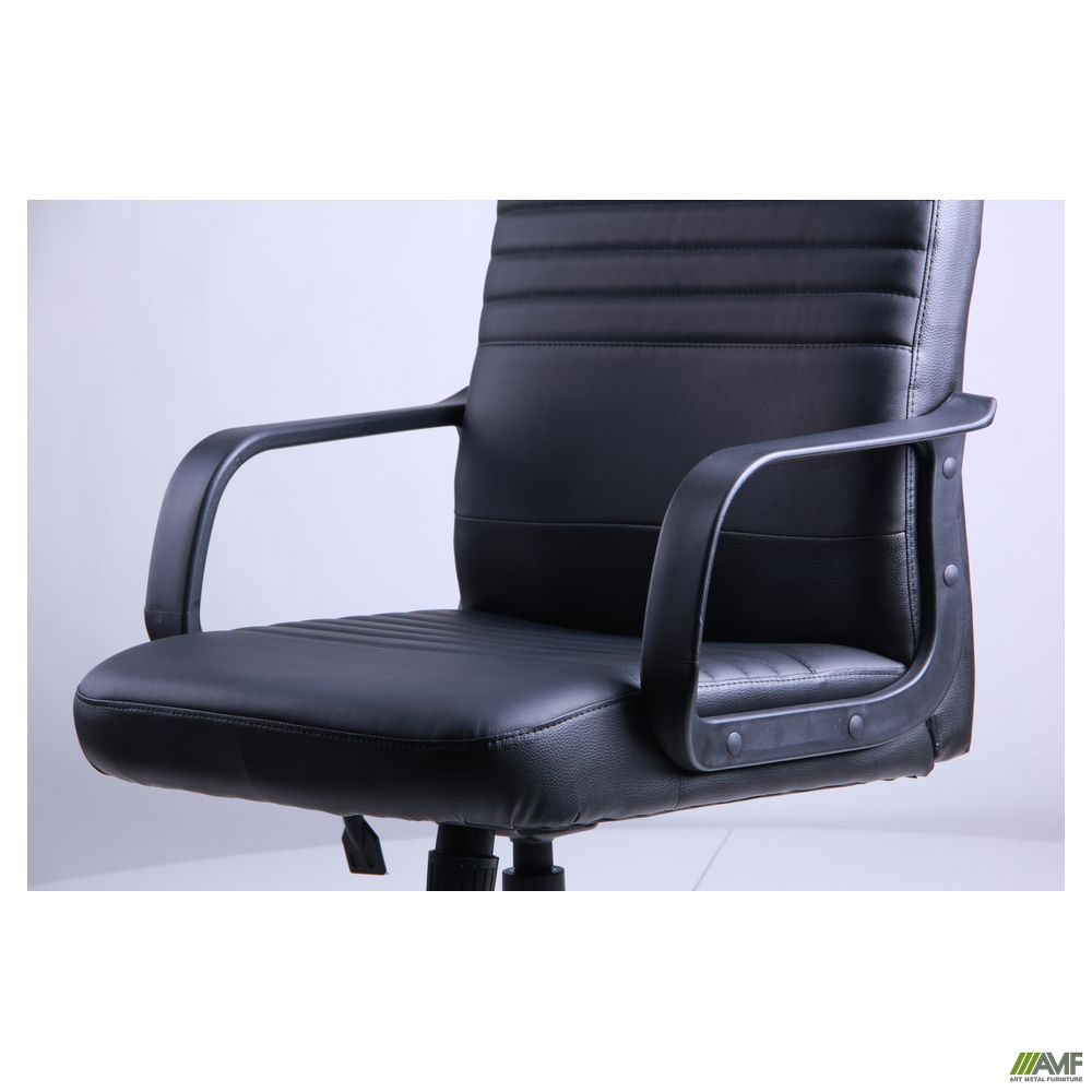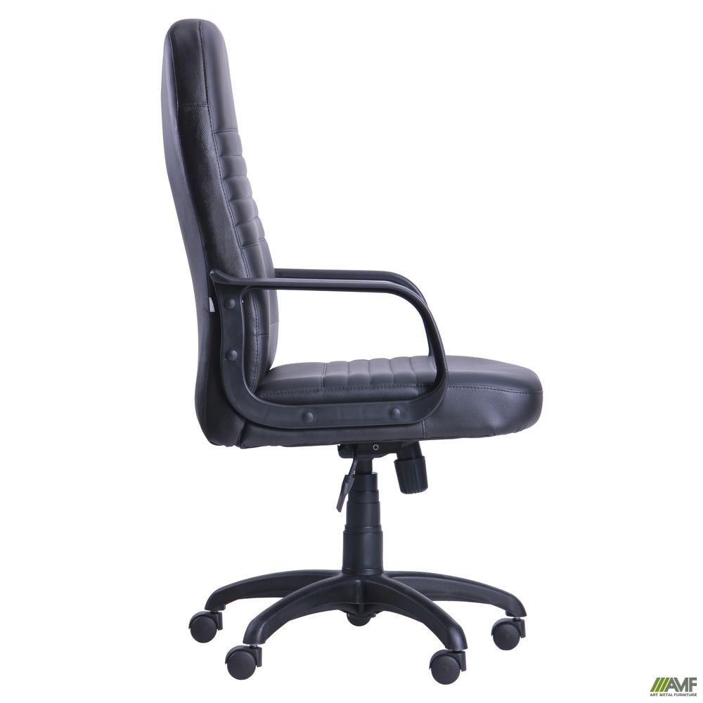 Офісне приміщення, а особливо кабінет директора, вимагають дотримання ділового інтер'єру кімнати і спеціально призначених меблів. Як правило, офісні меблі мають строгий стиль, який підкреслює всю серйозність справ компанії. Під ці критерії підпадає модель крісла Чинция Пластик. Його скромний вигляд і стриманість, мінімум деталей і спрощена конструкція визначають цей продукт як класичну модель для кабінету керівника. Незважаючи на досить звичайний дизайн і будову, крісло має багато позитивних характеристик. По-перше, як і багато офісних крісел, воно зроблено по анатомічним параметрам. По-друге, в цій моделі спинка має плавний вигин, який дозволяє зручно розташувати голову і спертися всією спиною, яка завдяки поперековій підтримці буде знаходитися в правильному положенні весь робочий день. По-третє, спинка плавно переходить в сидіння, яке закінчується трохи зрубаним краєм. Це необхідно для тих, хто багато сидить, щоб судини ніг не пережималися. Важливим моментом для людини будь-якої комплекції, а особливо повних людей, є те, що спинка і сидіння досить широкі. Хрестовина з 5 променями, яка виготовлена з поліаміду зі скловолоконними добавками, утворює стійку опору для всього крісла, яке повинно бути надійним. А щоб перевірити його на міцність, можна покататися по кабінету на роликовій системі, захищеній прогумованим шаром, щоб не дряпався паркет. Основна зручність крісла криється в його механізації. Від того, наскільки комфортно ви сидите, залежить настрій і бажання працювати. Тому використовуйте всі його переваги. Почніть з механізму, який допомагає вибудувати висоту. Це система «газлифт», яка знаходиться під сидінням і легко регулюється натисканням на ручку. Тим же способом налаштовується механізм гойдання Tilt, який дозволить погойдатися в горизонтальному положенні, щоб на короткий час забути про справи і оновити сили. Пневмопатрон можна обертати для регулювання жорсткості. Оббивний матеріал виконаний із зносостійкого шкірозамінника, який відрізняється ще й міцністю. Під ним розташовується в 2 шари поролон різного ступеня щільності Duo Foam. На спинці і сидінні є поперечні прошивки. Це необхідно для додаткової вентиляції повітря влітку в жарку погоду.