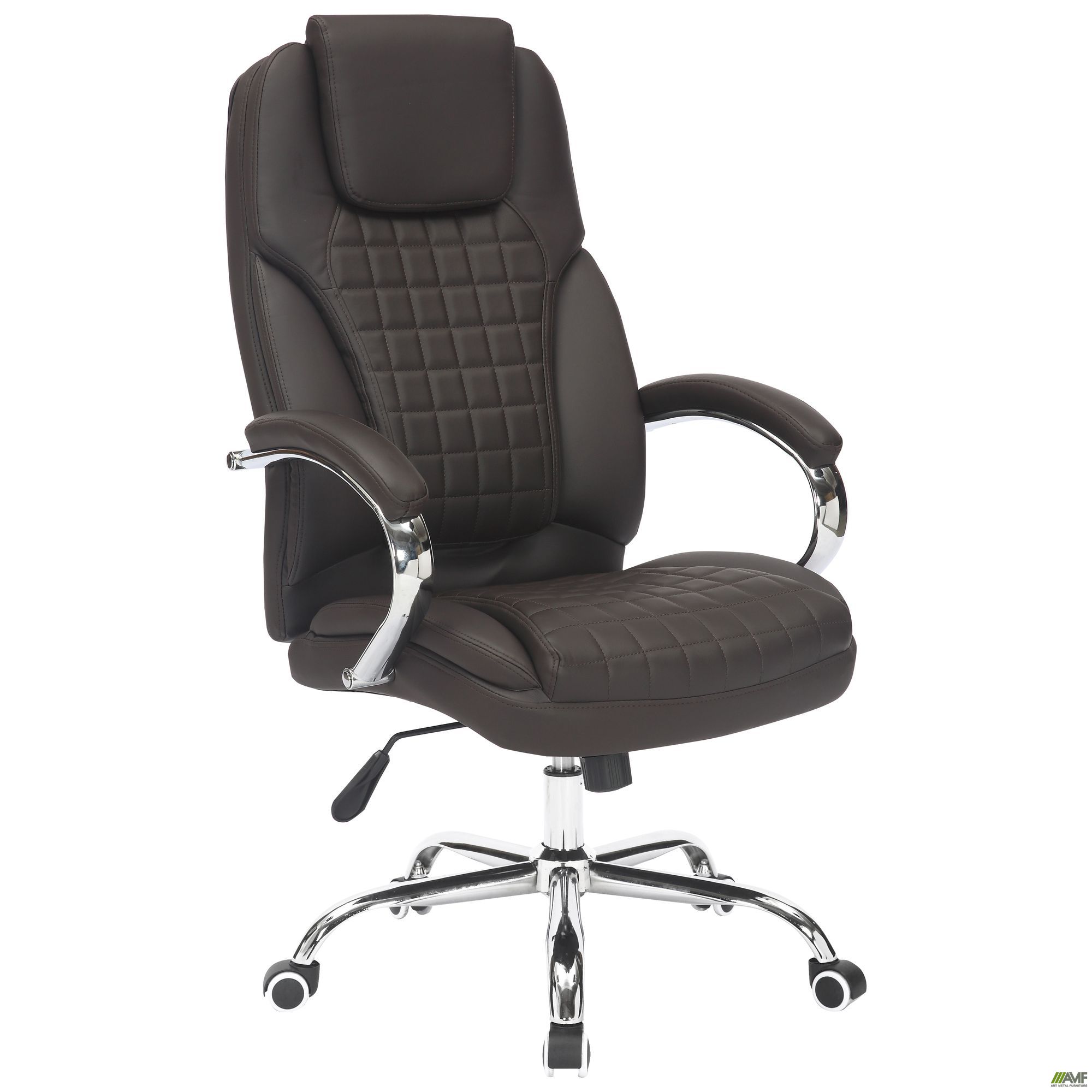 Крісло для керівника AMF Lester – найсучасніше стильне крісло. Основний упор зроблений на правильну ергономіку та комфорт користувача. У цьому кріслі зручно працювати багато годин поспіль завдяки поперековій підтримці, сучасним наповнювачам та якісній конструкції. У кріслі використані масивні підлокітники з м'якими накладками у колір оббивки та хромована металева хрестовина. Крісло обтягнуте високоякісним шкірозамінником. Матеріал має гарну зносостійкість і практичний у догляді. Надійний та багатофункціональний механізм гойдання Anyfix, у якому є не тільки режим вільного гойдання, а також можливість фіксації у будь-якому проміжному положенні. Важлива особливість - гумові ролики для гладких поверхонь, які зроблять пересування крісла максимально безшумним та забезпечать більш дбайливе зіткнення з ламінатом або паркетом. Крісло розраховане на навантаження до 150 кг. Ідеальний комфорт протягом дня, Крісло для керівника AMF Lester підходить як для офісного, так і домашнього використання.