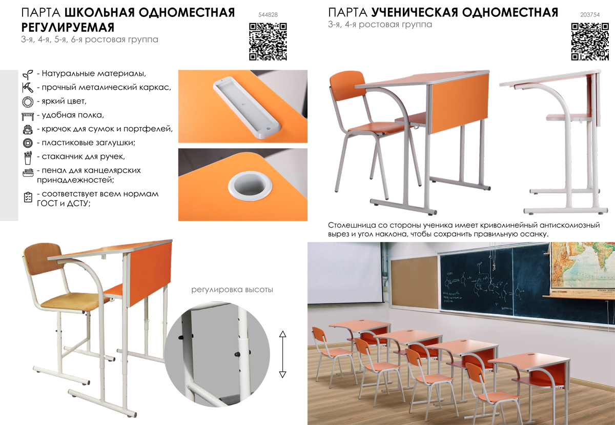На нашем сайте Вы можете ознакомиться с ассортиментом школьных и аудиторных парт: Парта Аудиторная одноместная без полки, Парта Аудиторная одноместная с полкой, Парта Аудиторная двухместная без полки, Парта Аудиторная двухместная с полкой, Парта Ученическая двухместная без полки, Парта Ученическая двухместная с полкой, Парта Ученическая одноместная, Парта Ученическая регулируемая 3-6 ростовая группа