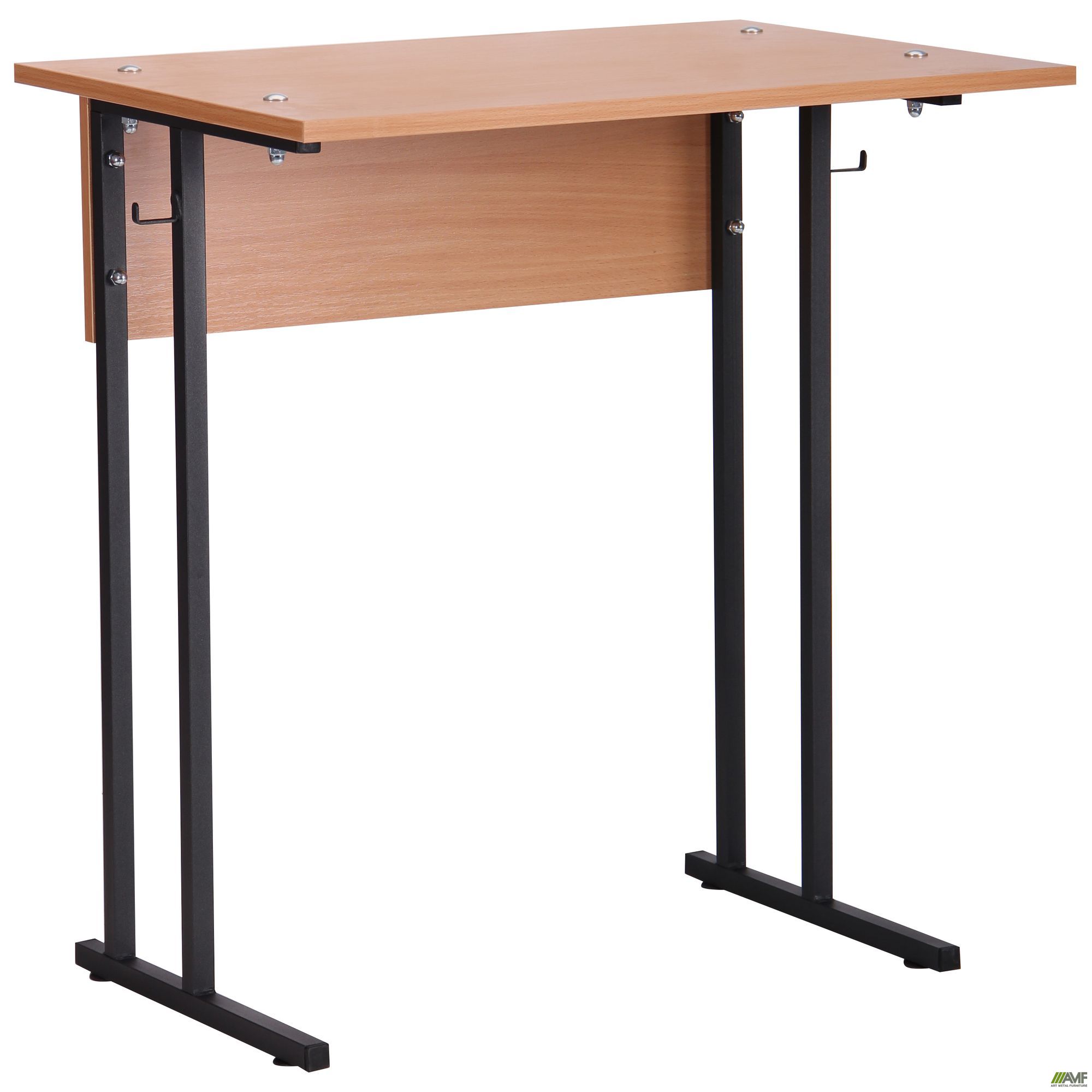 Парта AMF Аудиторна одномісна - створена для організації зручного навчального місця з використанням недорогих, але міцних і безпечних матеріалів. Висота і розміри відповідають ростовим категоріям і враховують норми ГОСТ і ДСТУ, розрахована на одного учня. Такі моделі парт відмінно підійдуть для обладнання аудиторії, їх можна ставити в будь-якому місці і з'єднувати в довгі столи-трибуни, що дуже зручно і дозволить розмістити учнів в приміщенні будь-якої форми. Парта виготовляється в двох варіантах - з полицею для книг і зошитів і без неї. Передбачені гачки для сумок, кромка столу виготовлена з пластику товщиною 2 мм. Каркас з пофарбованої квадратної труби 20x20 мм, міцний і надійний. Стільниця з ламінованого ДСП, висота фіксована і не регулюється. Парта Аудиторна випускається в двох варіантах з полицею і без, а також 1-місцева і 2-х місцева. Парта може бути виконана в 1-й, 2-й, 3-й, 4-й, 5-й і 6-й зростових категоріях. Каркас виконаний з квадратної труби розміром 20 * 20 мм, пофарбований порошковою фарбою чорного кольору. Стільниця, царга і полиця столу виконані з ламінованого ДСП, товщиною 16 мм кольору бук. Надійна пластикова кромка, товщиною 2 мм на стільниці, забезпечує більш комфортне і безпечне сидіння за столом. Парти відповідають всім вимогам ГОСТ і ДСТУ.