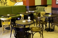 Проект кав’ярні «Coffee life» у місті Дніпро, за адресою пр. Дмитра Яворницького, 82 був реалізований у 2013 році. Заклад функціонує по сьогоднішній день. Інтер’єр розроблявся сумісно з власниками закладу та виглядає дуже затишно. Для оформлення кав’ярні були обрані: комфортні та м’які дивани Хіт, зручні крісла Лайн та Твіст. Дерев’яні Ірландські стільці та цікаві пуфи Раунд створюють не менш комфортні додаткові сидячі місця. В якості основи під стільниці були обрані металеві бази Сфера у чорному кольорі. Заклад має невеличку площу та може прийняти до 30 відвідувачів.