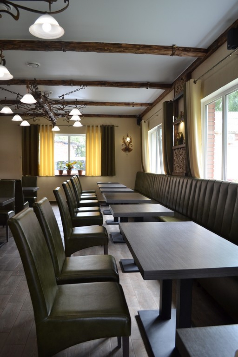 Проект піцерії «Centrale» у місті Путівль був реалізований у 2017 році. Заклад функціонує по сьогоднішній день. Інтер’єр закладу створювався сумісно з власниками піцерії. Дизайн виконаний у класичному та європейському стилі з використання приємної для ока нейтральної гамми кольорів. Для оформлення ресторану були обрані: дивани Гранд та стільці Хіт з екошкіри у темно-фісташковому кольорі. Стільниці з фанери Порто виглядають стильно та витримано. В якості основи під стільниці були використані металеві бази Афіна в чорному кольорі. Заклад досить просторий та може прийняти до 60 відвідувачів.
