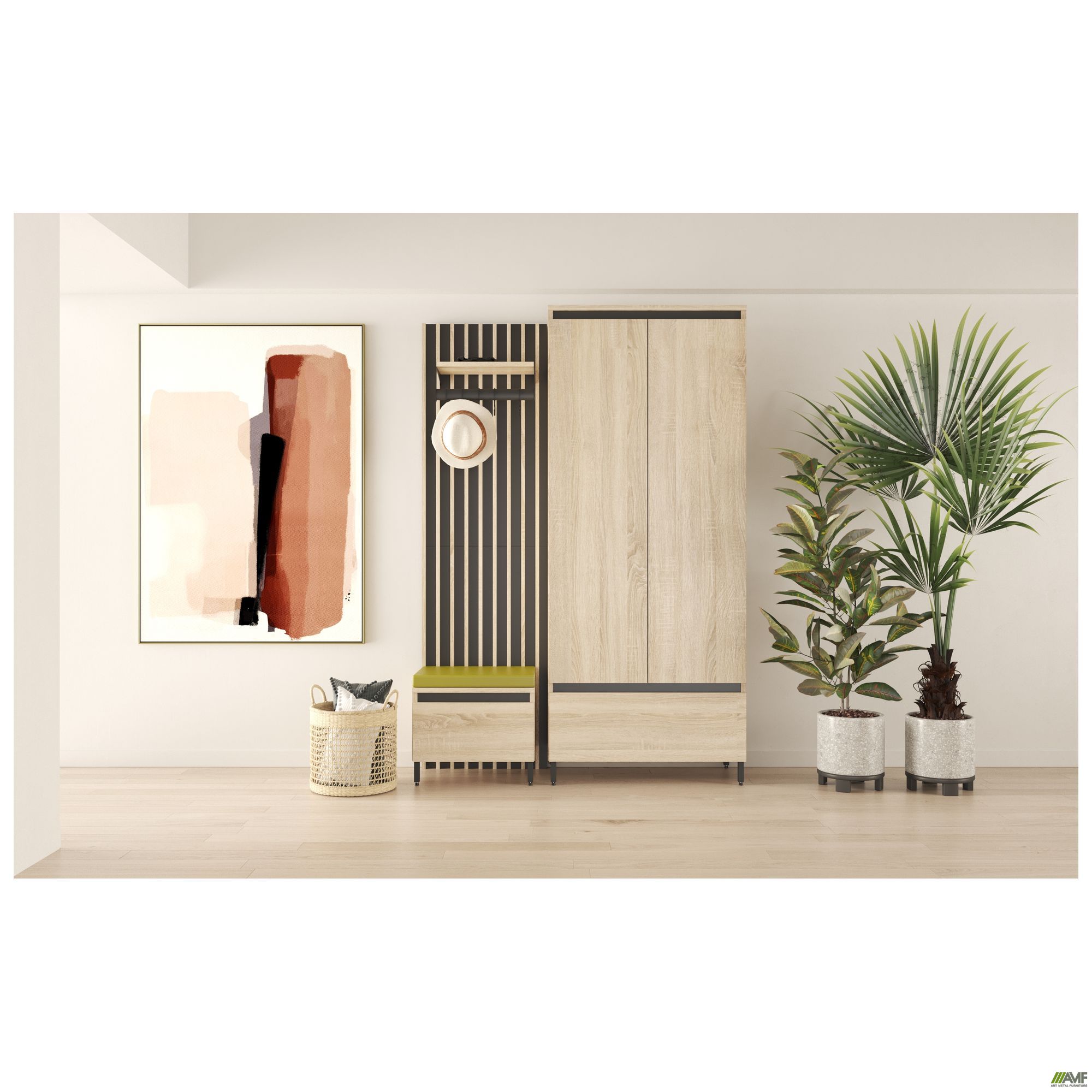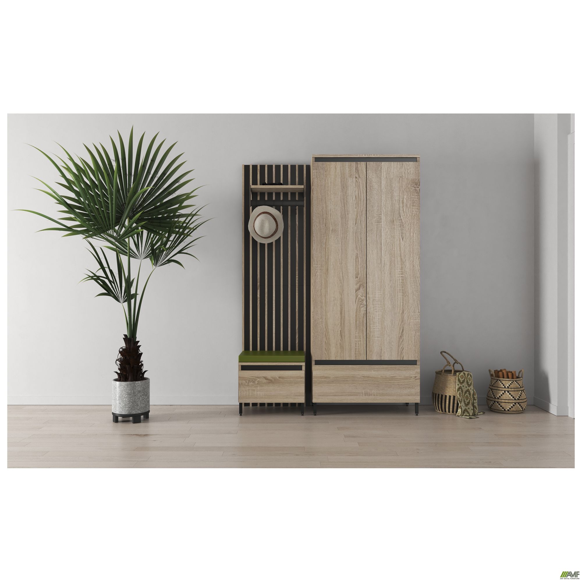 Колекція корпусних меблів AMF Welcome створена спеціально для облаштування житлових приміщень та передпокоїв. Усі модулі з колекції поєднуються у різноманітних тандемах та чудово доповнюють один одного. Модулі оснащені металевими ніжками, покритими порошковою фарбою. Вироби виготовлені з ламінованої плити ДСП, товщиною 16 мм. У колекцію корпусних меблів AMF Welcome входять всі необхідні модулі для облаштування передпокоїв, завдяки чому можна підібрати варіанти для оформлення саме вашого інтер'єру.