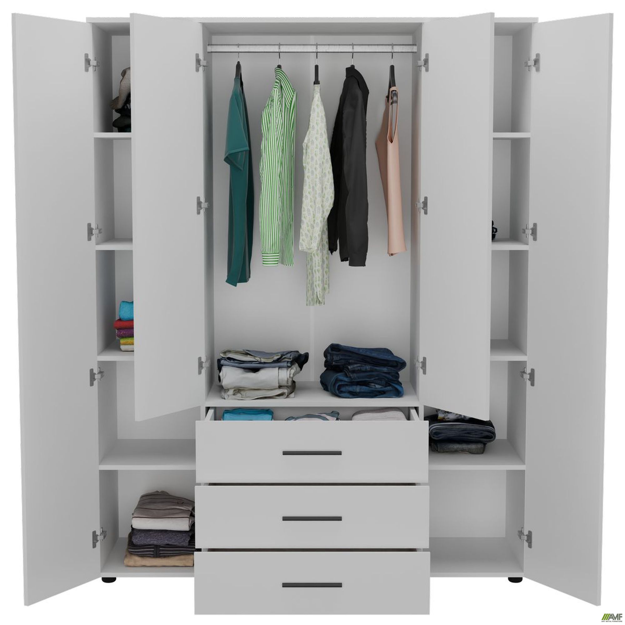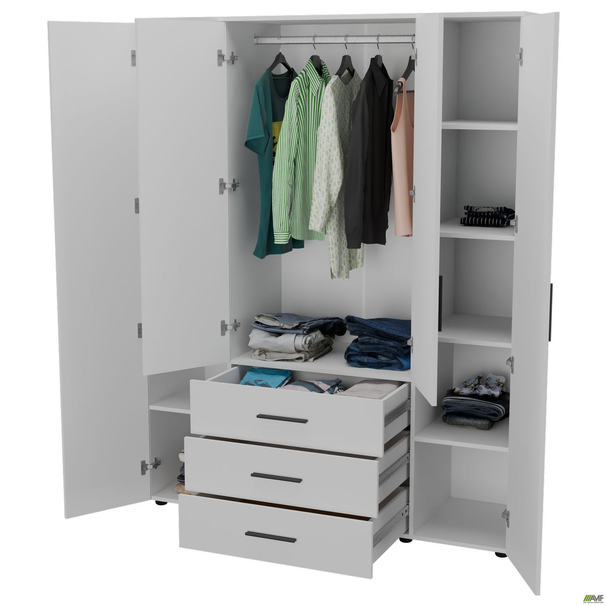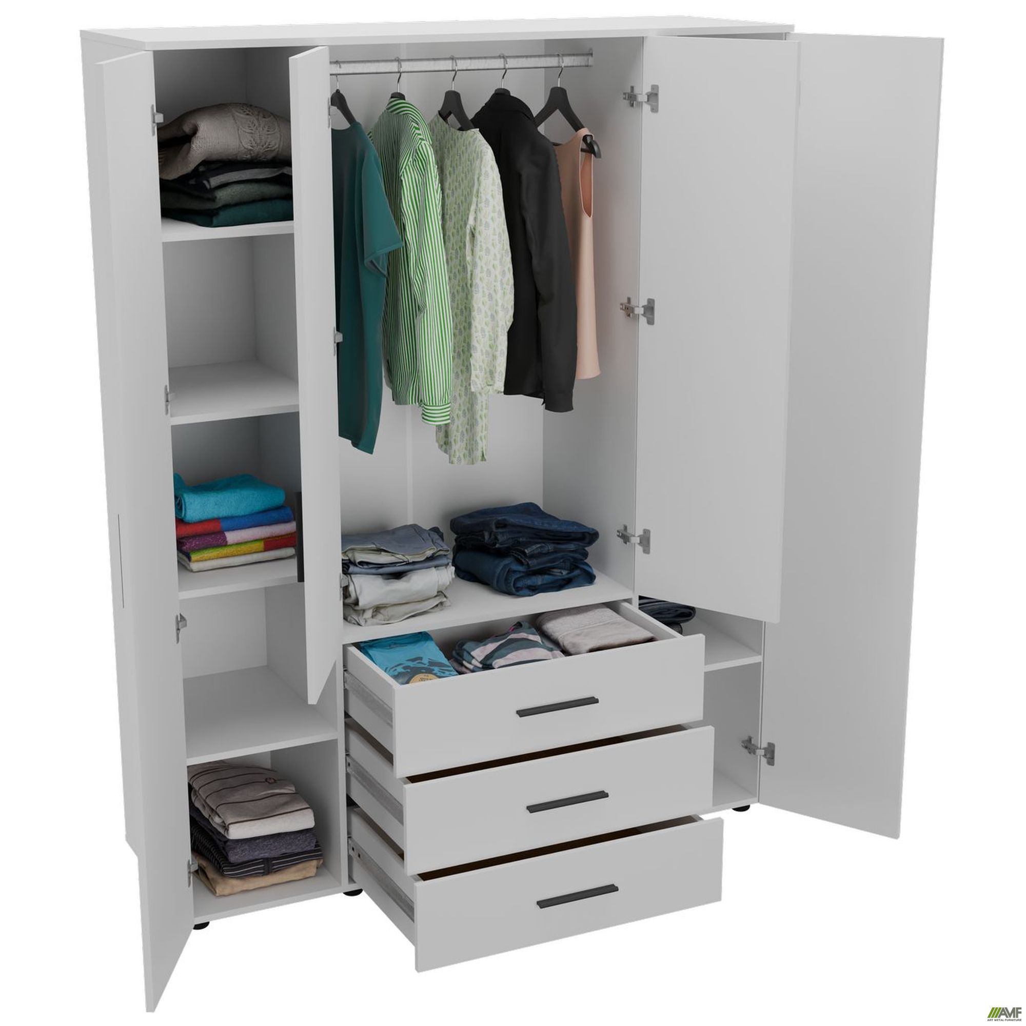 Шафа гардеробна City 4-х дверна 3 шухляди (1500х500х1930Н) Білий