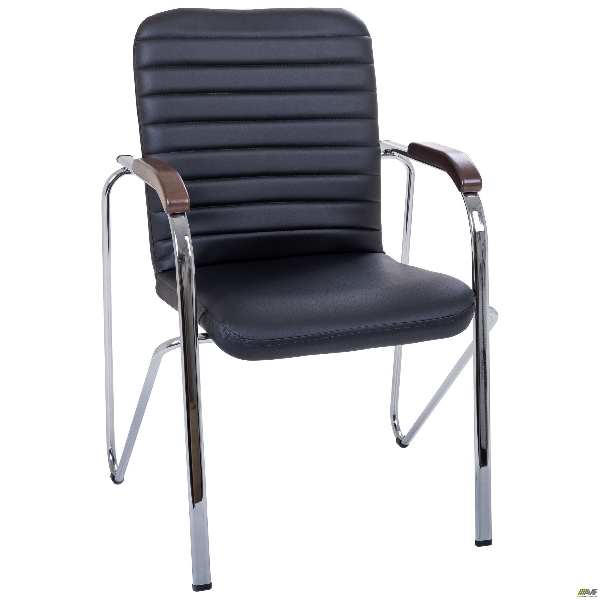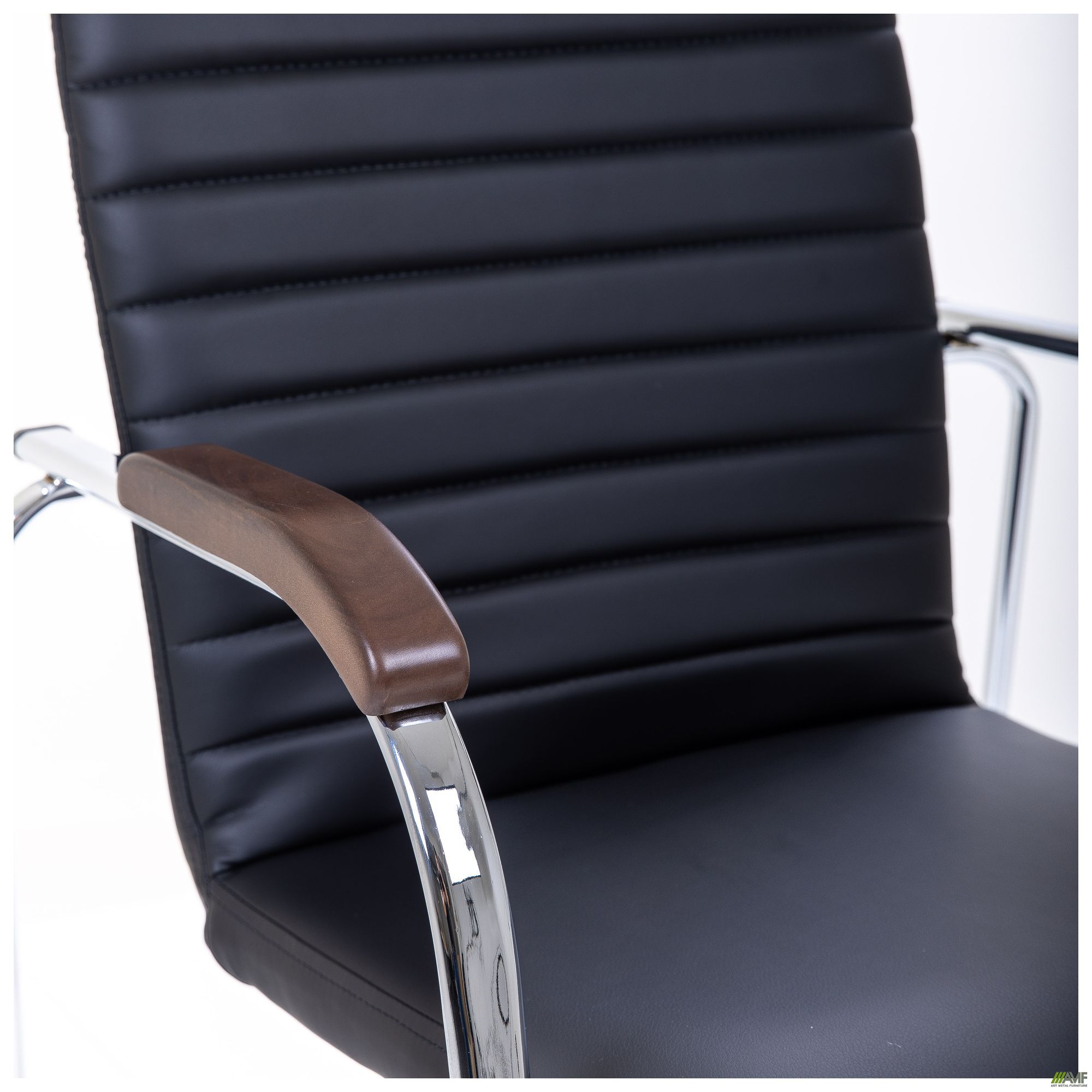 Стілець AMF Rumba – поєднання функціональності та незвичайного дизайну. Передні ніжки завдяки вигинам переходять у задні опори і плавно закінчуються під сидінням. Підлокітники мають у верхній частині м'які накладки, тон оббивки крісла. Підлокітники не тільки функціональні в частині захисту від холодної металевої поверхні, але й естетично виглядають і надають виробу пікантності. Металеві ніжки забезпечують конструкції надійність та міцність, тому використовувати стілець можуть люди з будь-якою вагою. Широке сидіння та зручна спинка стільця Rumba забезпечують комфорт для розташування на стільці.